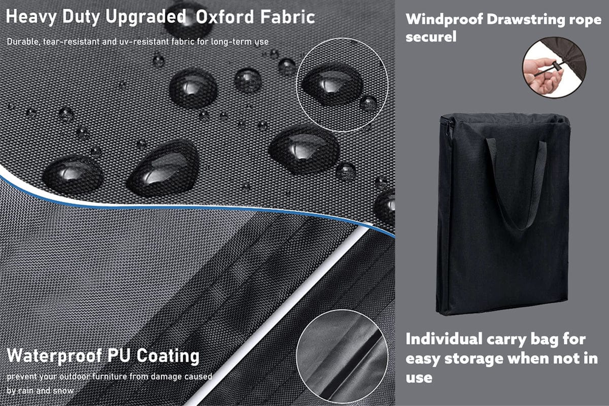 Upgraded oxford fabric rain cover protects your furniture from rain, snow, frost, bird droppings, dirt, dust,helps to prolong the life of your outdoor furniture