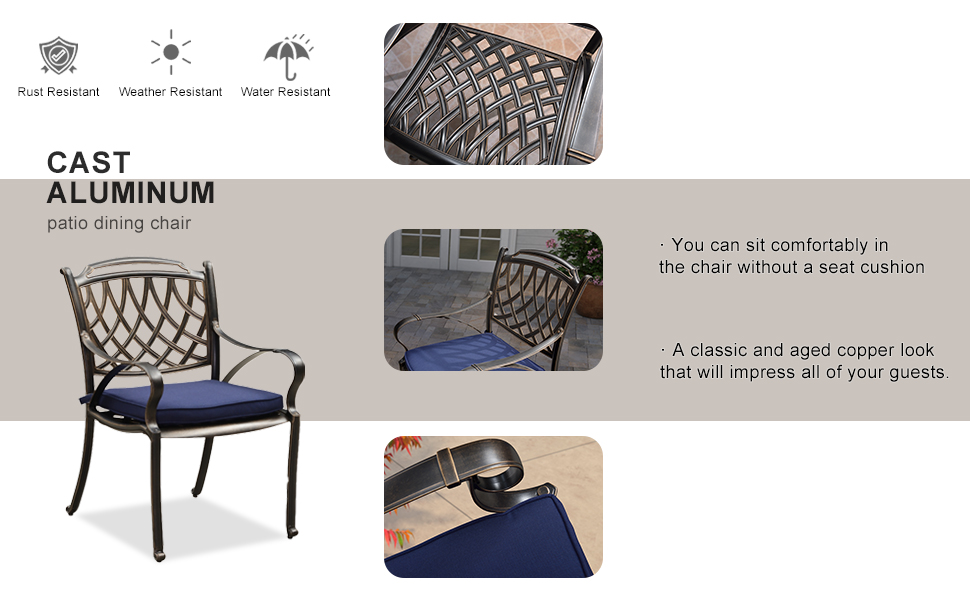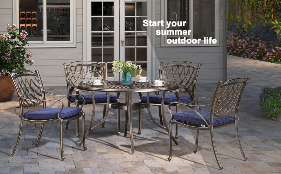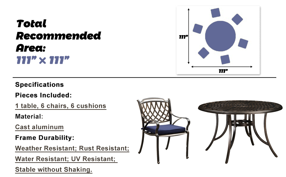 Solid Frame: The frame of the whole set is made of sturdy cast aluminum which can reduce the erosion caused by rain and weather, maintain a long period life