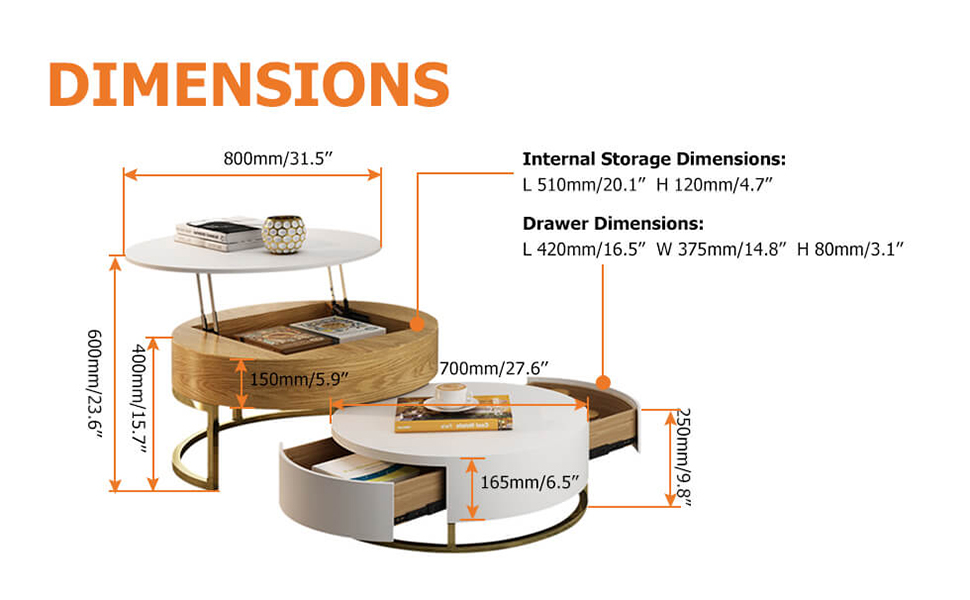 Comes with 2 rotatable drawers and hidden storage, this coffee table offers ample space to store magazines, remote control, toys or your little secret.